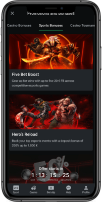 Le bookmaker offre aux joueurs des bonus de dépôt sans code promo, y compris un bonus de 200 % jusqu’à 1 000 € ainsi que 20 € de paris gratuits pour les paris sur les événements eSports. Chaque week-end, les joueurs peuvent profiter du bonus « 50% Champion’s Boost ». Après avoir activé l’offre et effectué un dépôt minimum de 15 €, ils reçoivent un bonus de 50 % du montant déposé, plafonné à 200 €. Le bonus doit être misé 15 fois dans un délai de 72 heures, sur des paris simples ou combinés incluant au moins une sélection avec une cote comprise entre 1,70 et 5,00.