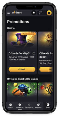 WinHero ne dispose pas d’une application mobile native dédiée aux plateformes Android et iOS. Cependant, une Application Web Progressive (PWA) fait office d’application mobile WinHero. C’est un raccourci du site qui s’ajoute à l’écran d'accueil de votre mobile à partir d’un navigateur web.