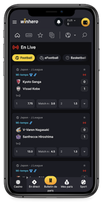 Dans la section sports de Winhero, les matchs en direct sont mis en avant avec la fonctionnalité de paris en direct Winhero, qui couvre des disciplines comme le football, le basketball et le tennis, avec des cotes et statistiques mises à jour en temps réel. Les paris en direct sont disponibles lors de grands événements comme la Ligue 1, la Premier League et la NBA.